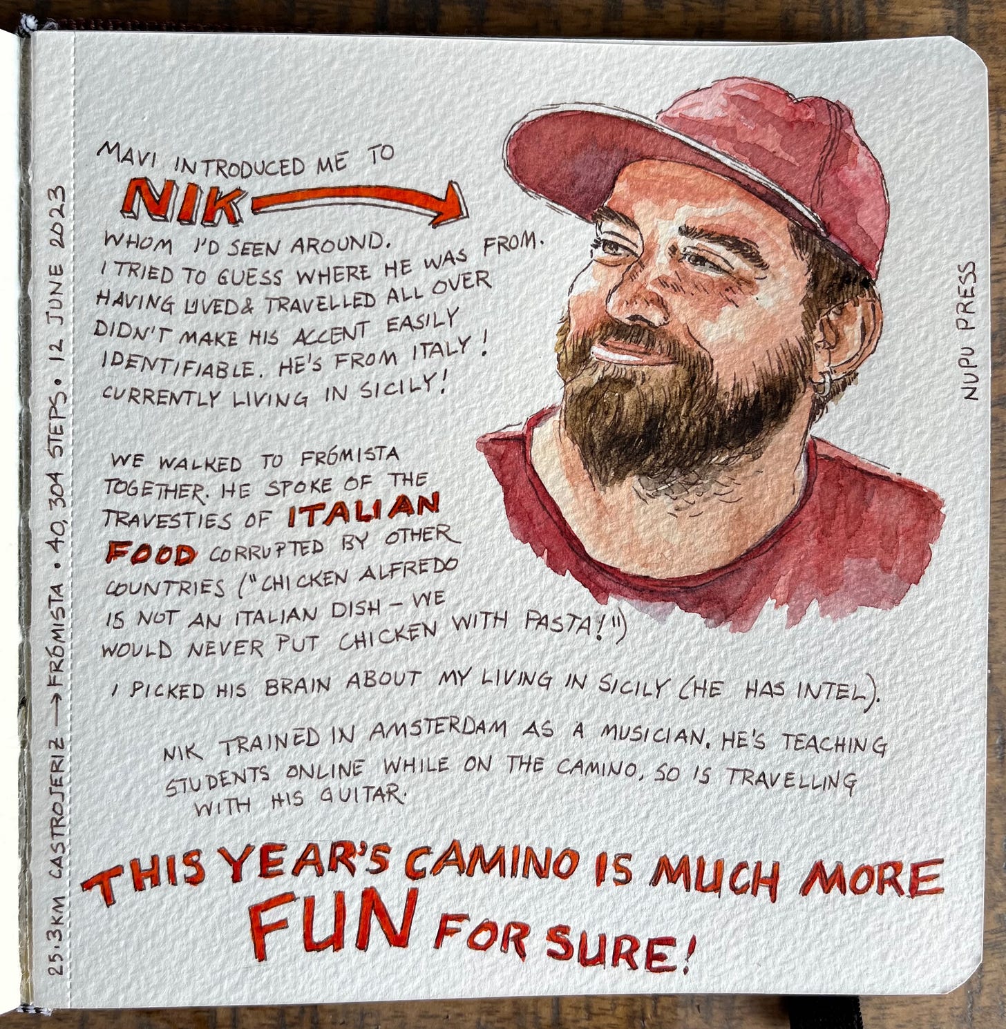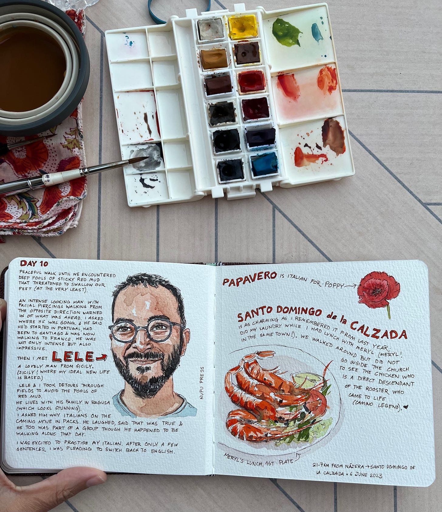 Keeping a sketchbook diary profoundly enriched my camino (as it does my daily life too). By capturing my day, I honoured my experience, I treasured its big and tiny moments, re–living them in the sketchbook, and I shared it all, so it came back tenfold.